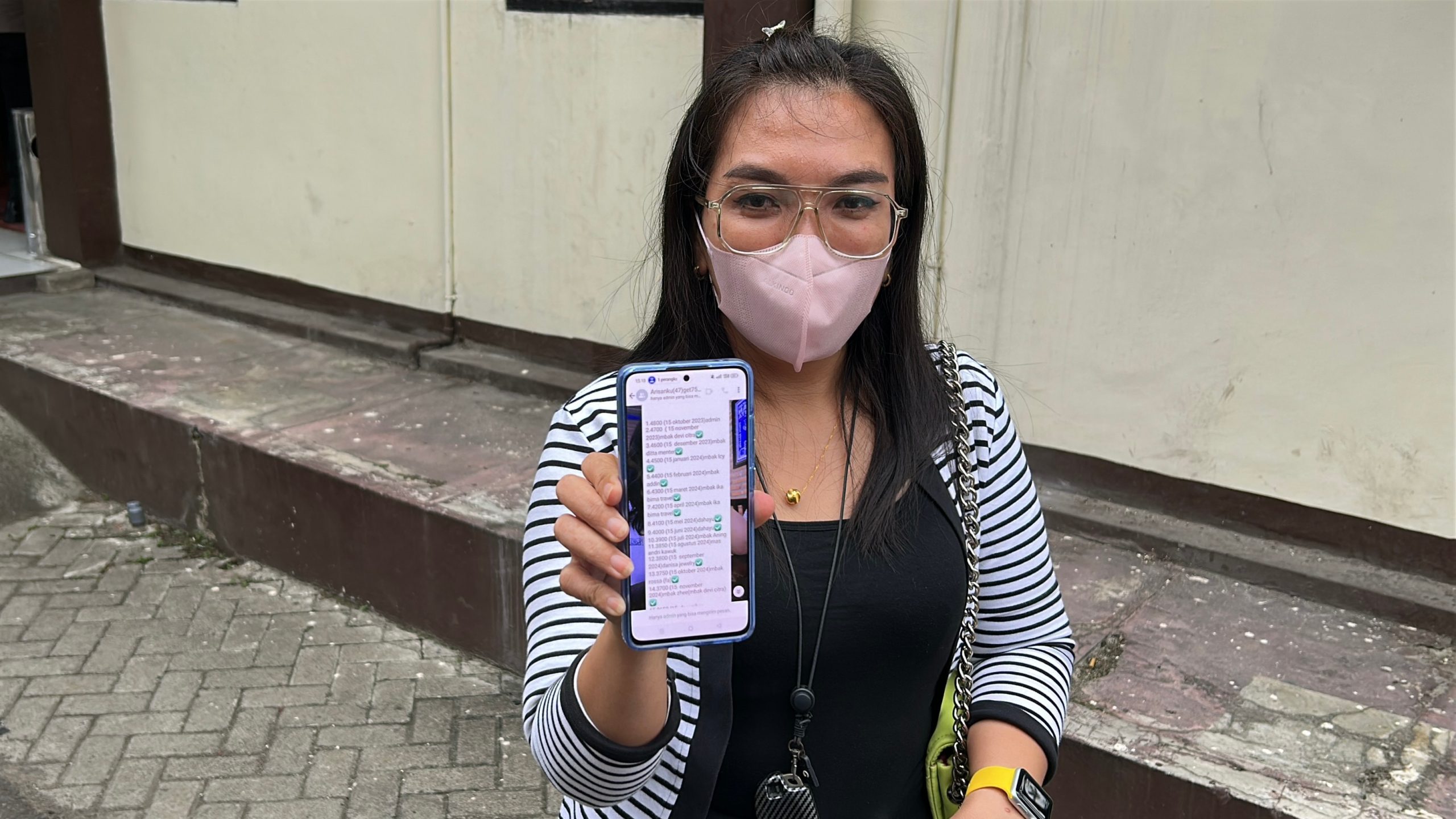 Salah satu korban, Aning Triwahyuni, mengungkapkan bahwa mereka melaporkan seorang admin arisan berinisial SW yang diduga menggelapkan dana para anggota.