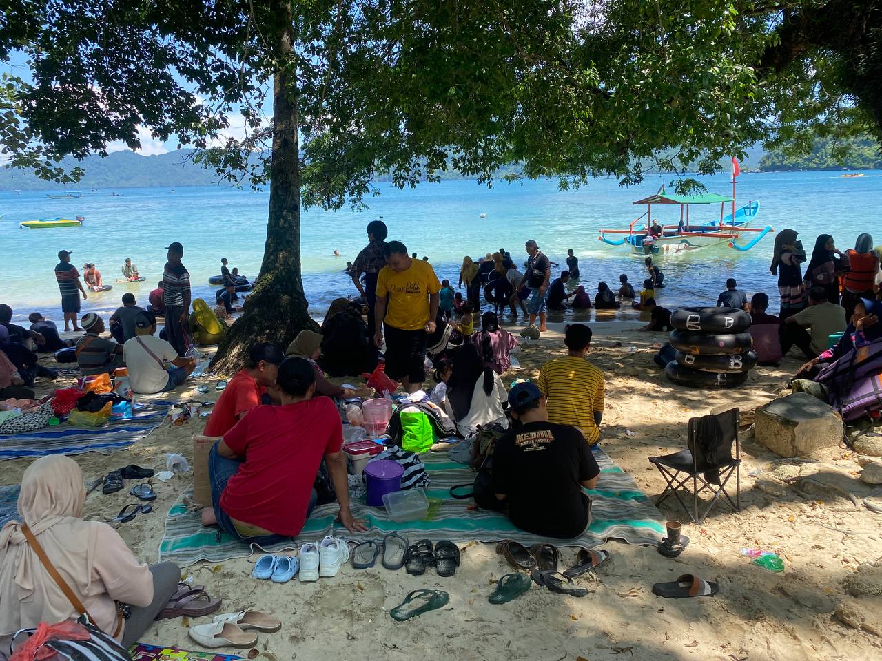 Selama musim liburan sekolah, Pantai Mutiara di Desa Tasikmadu, Kecamatan Watulimo, Trenggalek ini selalu ramai dikunjungi wisatawan dari berbagai daerah.