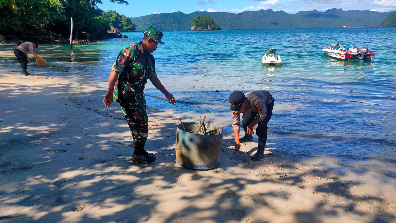 Aksi resik-resik pantai ini melibatkan berbagai unsur lintas sektor, mulai dari aparat keamanan, pemerintah kecamatan, hingga kelompok masyarakat.